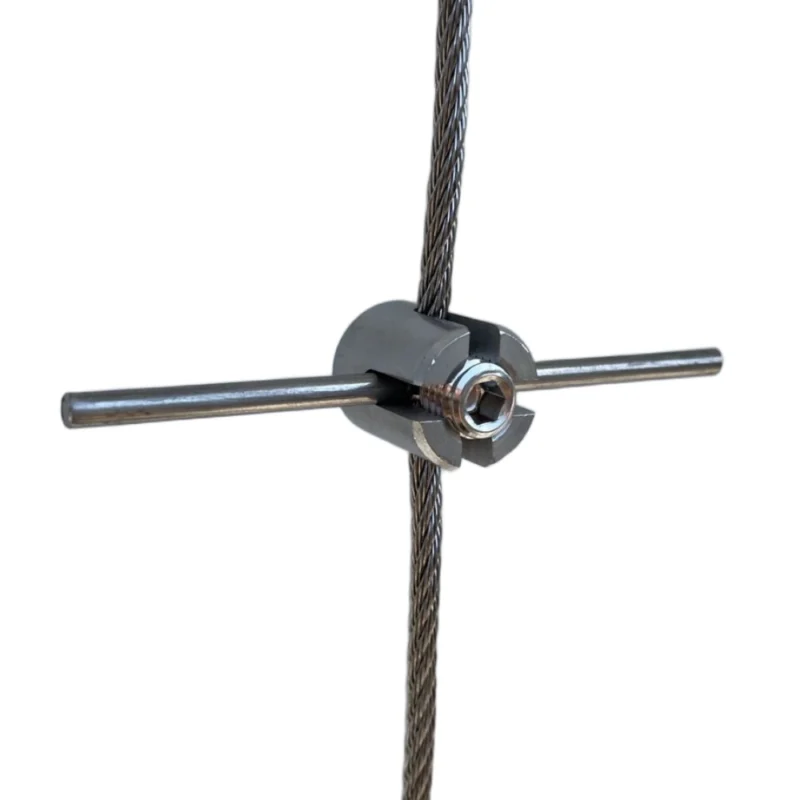Eine Steighilfe verhindert das Abrutschen der Kletterpflanze, zum Beispiel bei starkem Wind. Das Produkt beinhaltet ein Edelstahlstab und eine Kreuzklemme.